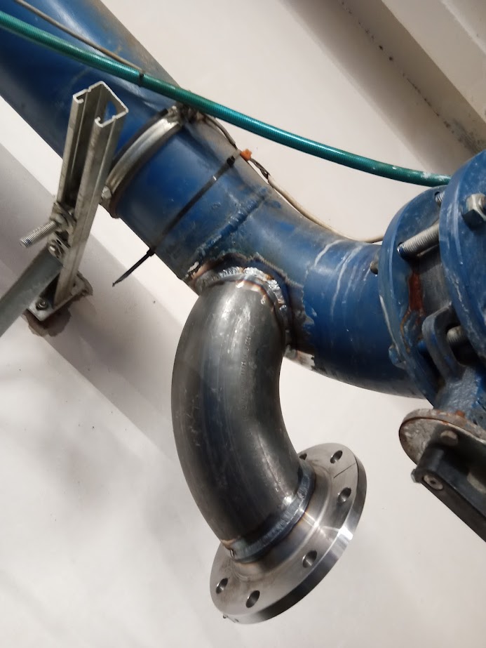 - „Wpięciu się” kolanem DN150 w rurę DN200.